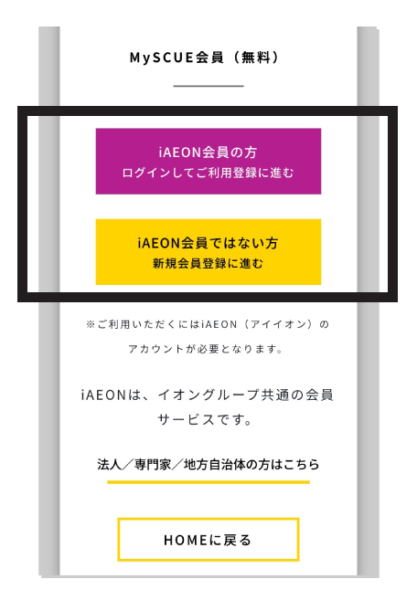 - ※MySCUEへの登録にはiAEONでの会員登録が必要となります。