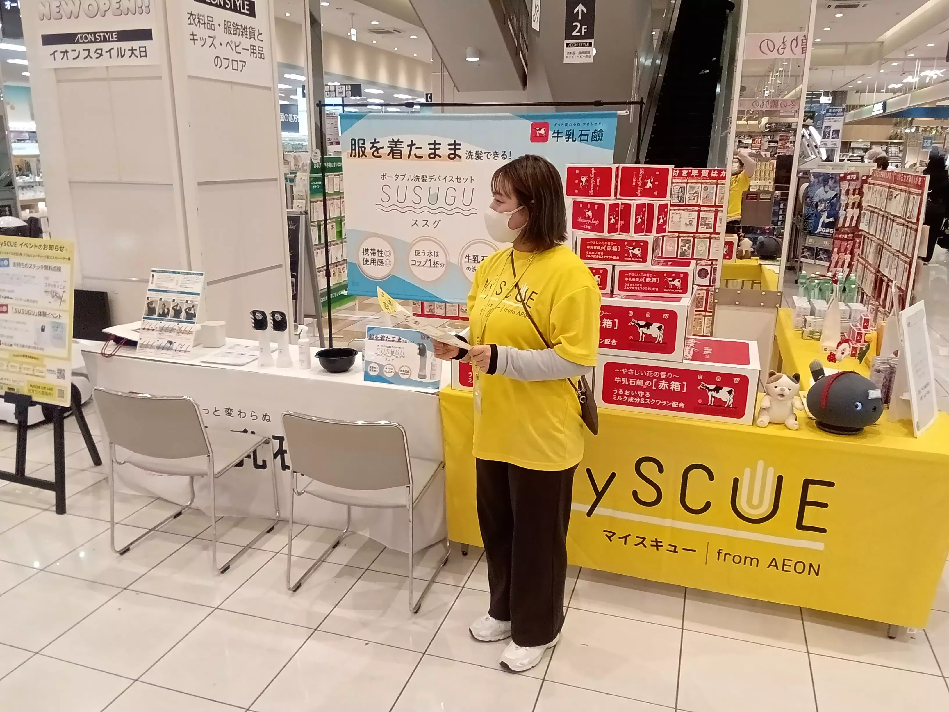 本日、イオンスタイル大日1階催事場にて、牛乳石鹸様の「susugu(すすぐ)」体験イベントを開催いたしました。