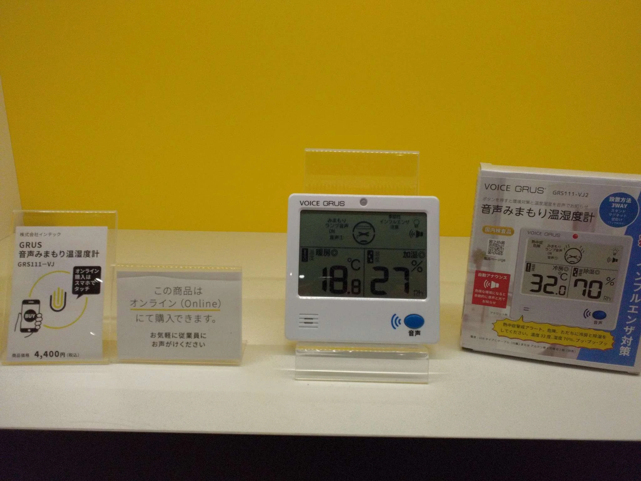 音声でお知らせしてくれる温湿度計です。