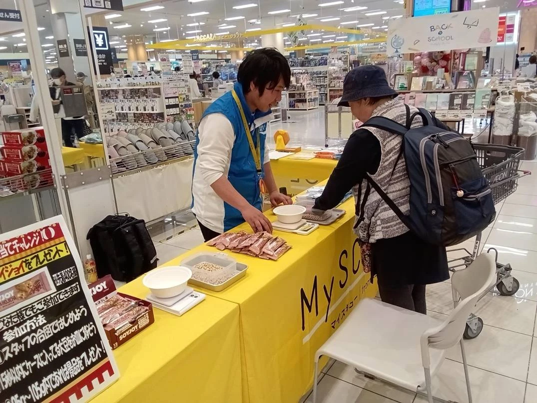 大日店1階エスカレーター前にて、「大豆100gぴったり当てゲーム」を開催いたしました。