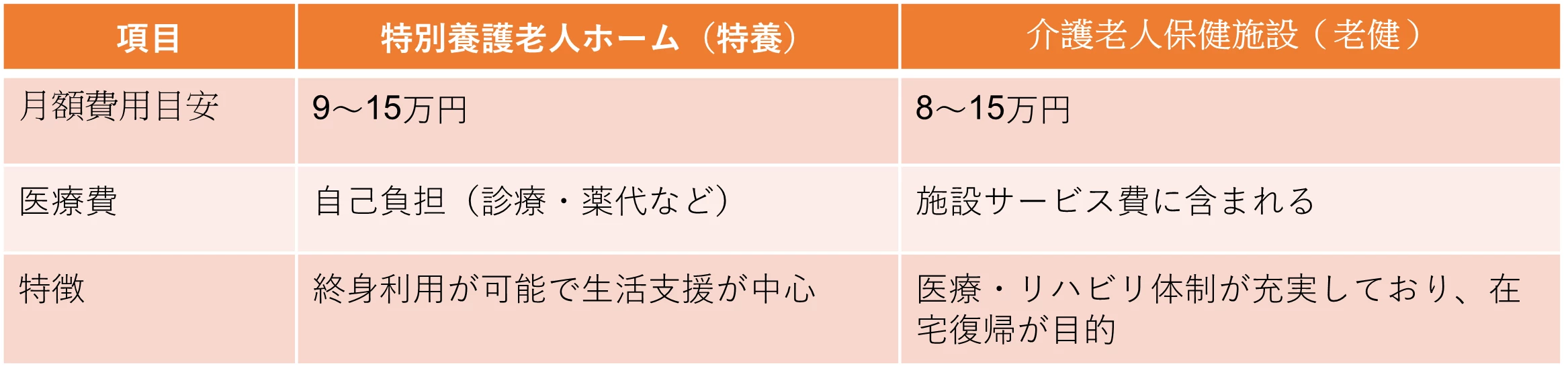 ・費用がやや高め:医療やリハビリ体制が充実している分、特養より費用が高くなる傾向があります。